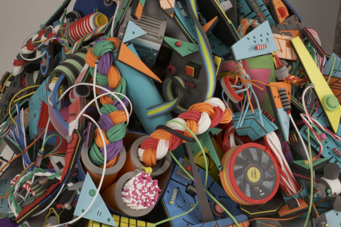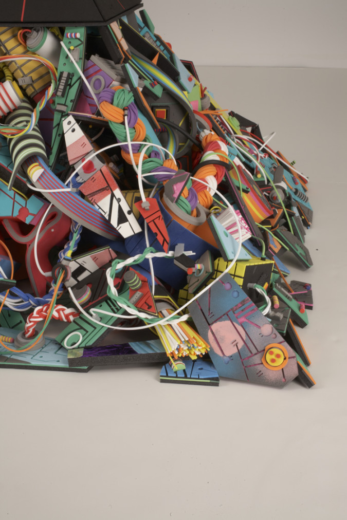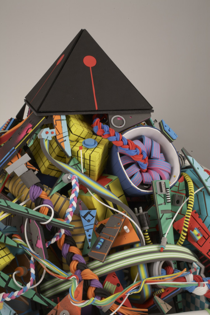 foam, foamcore, chipboard, glue, paper collage, paint marker and spray paint, 32 x 32 x 24 inches, 2011